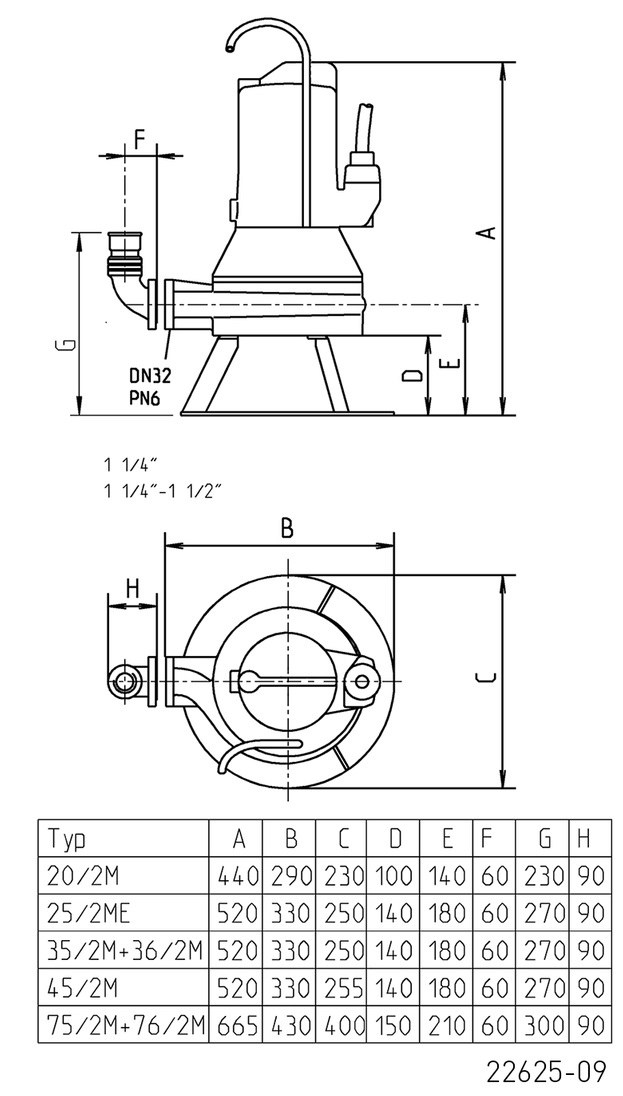 Wysokość podnoszenia H [m] | 25 | 28 | 32 | 34 | 36 | 38 |