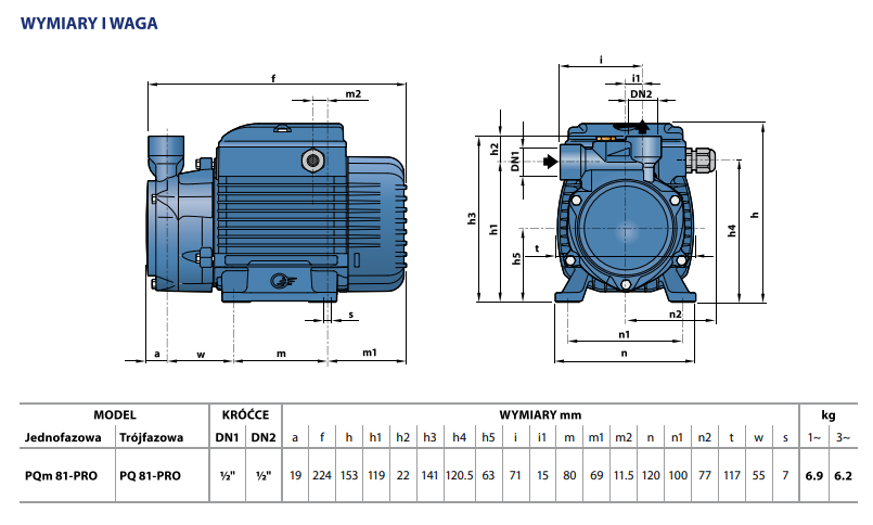 • Uszczelnienie mechaniczne: Węglik krzemu / Graft / NBR