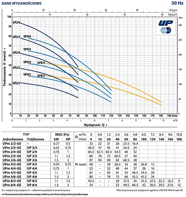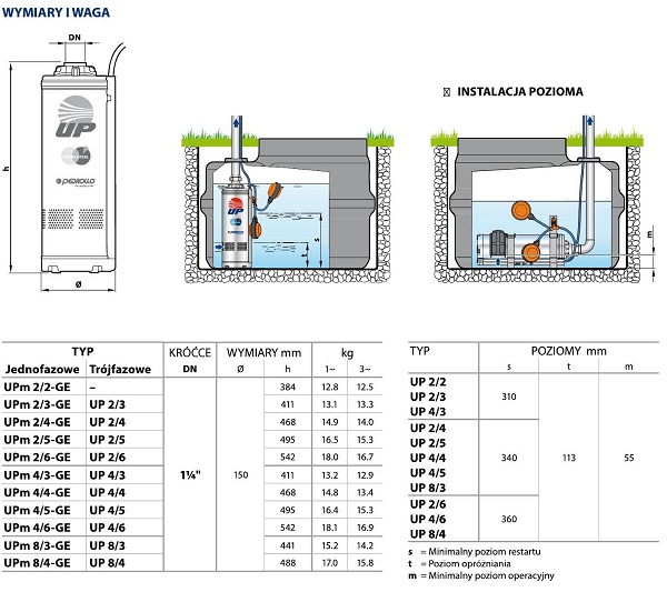 - Możliwość dostawy pompy bez wyłącznika pływakowego