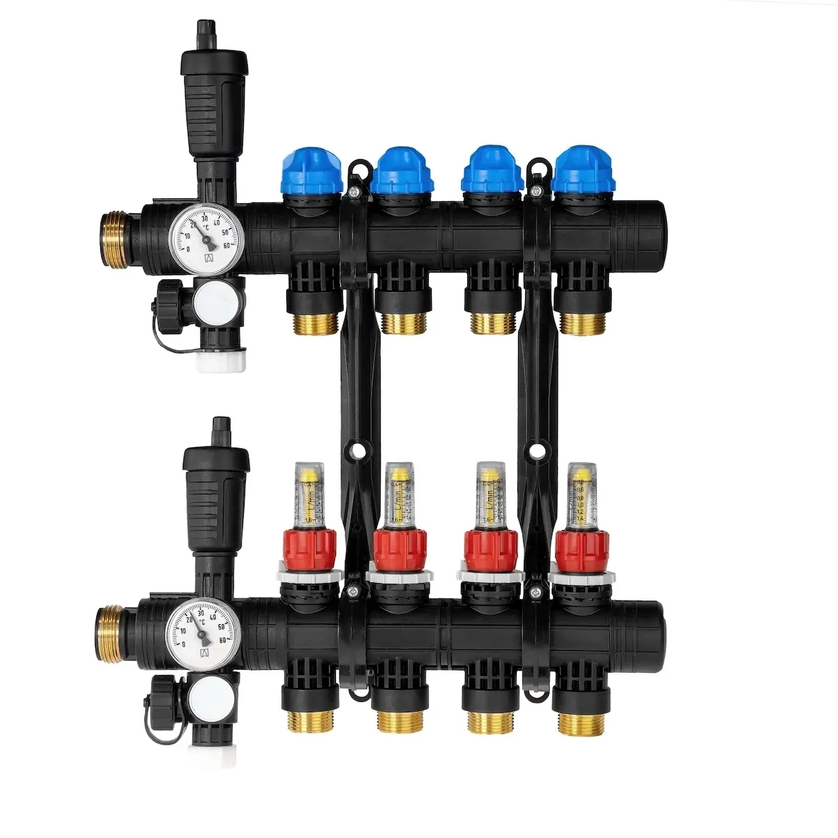 - Rozprowadza ciepło/chłód ze źródła na poszczególne pętle instalacji płaszczyznowej.