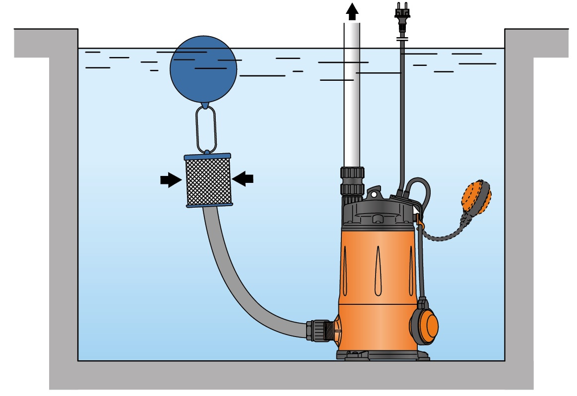 TOP MULTI-EVO z zestawem KGE do zasysania na głębokości ok. 10 cm pod powierzchnią wody, co zapobiega zasysaniu pływających na dnie zbiornika odpadów i osadów, a tym samym uszkodzeniu pompy.