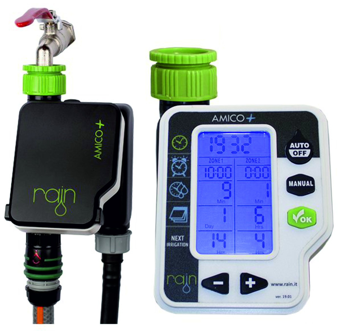 Sterownik nakranowy Amico 2 + TM został sprawdzony jako najbardziej przyjazny dla użytkownika oraz wysokiej jakości produkt na rynku. Korzystając z tego samego programowania co Amico+, Amico 2 + pozwala ustawić dwa różne zawory, całkowicie niezależnie. Podświetlany ekran oraz duże znaki umożliwiają zaprogramowanie sterownika zarówno za dnia jak i w nocy.