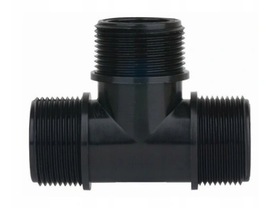 Trójnik z odejściem pod kątem 90° wyposażony w przyłącza gwintowane.